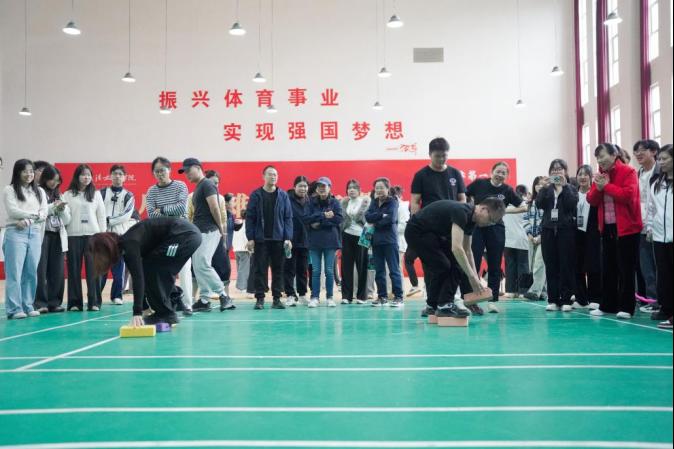 “摸石头过河”赛道上,老师们踩着“石头”交替前进,双脚不能触碰地面。稍有不慎便会“落水”,引得围观员工阵阵欢笑。太阳集团tcy8722的老师们步伐稳健,双手迅速传递垫脚石,动作一气呵成,赢得热烈掌声。赛场边加油声此起彼伏,平日严谨的教师们此刻全情投入,脸上洋溢着青春与拼搏的光芒,展现出别样的育人风采。