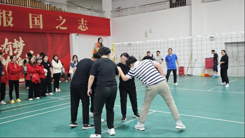 气排球场之上,老师们凝心聚力,以团结为经纬、默契为丝线,编织成一张无懈可击的无形之网,将赛场的阻碍与挫折悉数拦截。腾空的气排球划出灵动弧线,胜利的光芒恰似破晓曙光,穿透层层云雾,稳稳落在他们因赛场荣光而滚烫发烫、洋溢着澎湃喜悦的脸庞上。每一次击掌都传递着无声的信任,每一次跃起都承载着共同的信念。讲台之外,他们以行动诠释协作的意义,用汗水书写不息的热忱,赛场上的每一道身影,皆如星辰交辉,映照出教育者群体坚韧而灵动的精神图景。