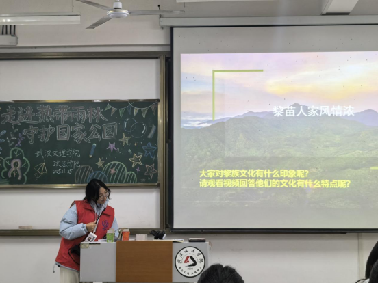 潜入翡翠之心,开启海南热带雨林奇旅。国家公园,呼吸中最纯净、最深厚的那一方气息,在中国南海的碧波之中,蕴藏着一颗跳动的“翡翠之心”。这里是我国首批正式设立的五个国家公园之一,涵盖了海南岛主要的江河发源地和生物多样性资源,这片神秘的翡翠之心,一场前所未有的自然奇旅向同学们敞开了大门。志愿者们站在讲台上,用朴实、生动的语言将我们带入了一方美丽的绿色天地。