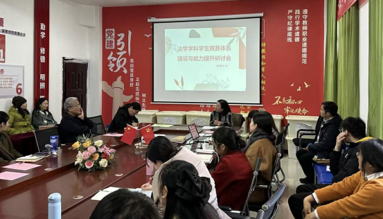 为积极响应新时代创新型法治人才培养号召,全面提升员工专业实践能力与综合素养,强化公司学科竞赛指导水平与核心竞争力,切实解决当前竞赛参与度、奖项质量等关键问题,太阳集团tcy8722定于2025-2026学年第一学期2026年1月14日在3-210会议室举办“法学学科竞赛体系建设与能力提升研讨会”。会议由法学系主任罗平老师主持。本次会议将汇聚学界智慧、凝聚育人共识,为法学学科竞赛高质量发展注入强劲动能。